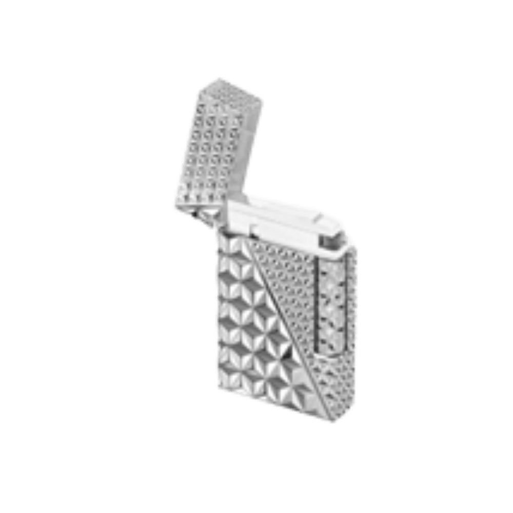 The S.T. Dupont Fire X lighter, made of brass with a palladium finish, features a sophisticated 3D motif in two sizes. Its double yellow flame ensures precise and reliable ignition. Inspired by the iconic point de feu technique, it is an exclusive accessory that combines design and functionality.